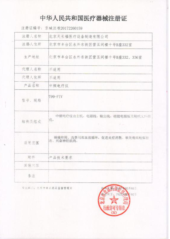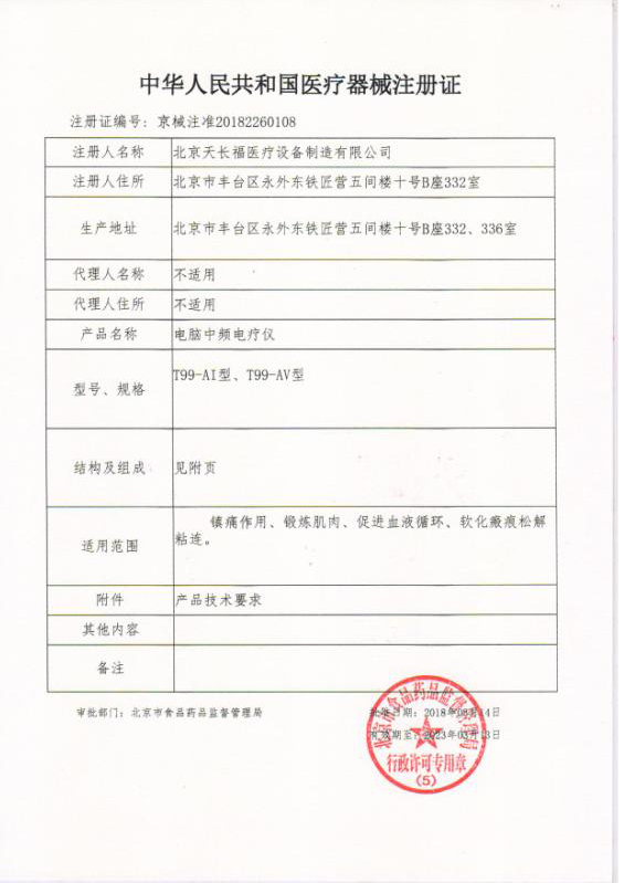 - T99-FIV醫(yī)療器械注冊證