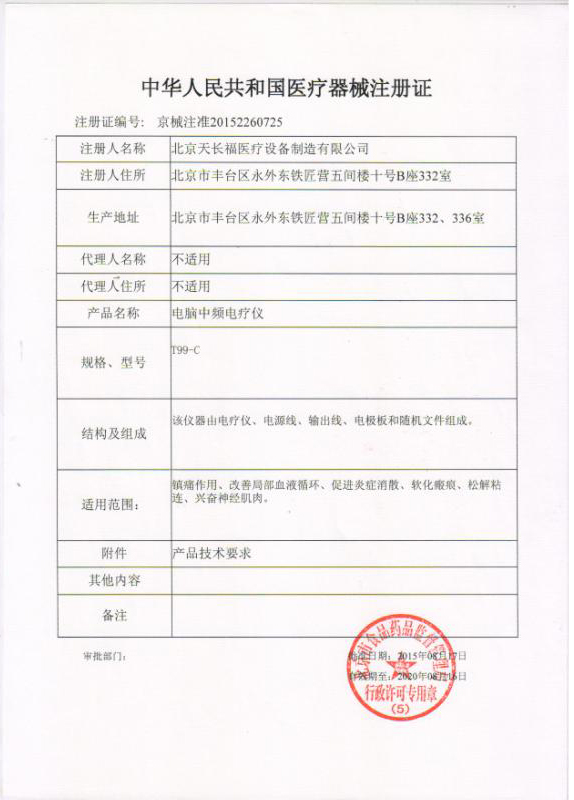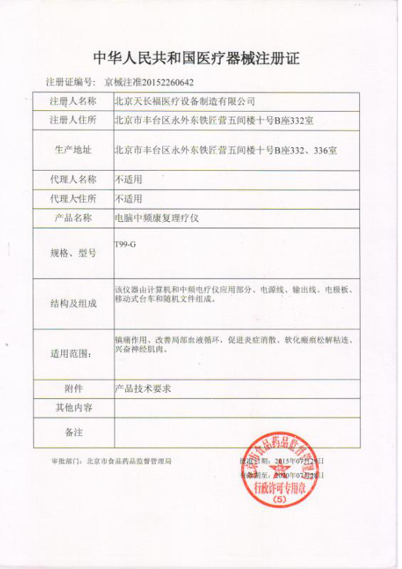- T99-C醫(yī)療器械注冊證